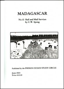 Madagascar Rail and Mail Services by C W Spong. Published by The Indian Ocean Study Circle. 102 pages. card cover. There are not many books on Madagascar in the NPS Library, so this volume is particularly welcome. The book is well illustrated with photographs and reproductions of stamps and postmarks. The first chapter is fascinating for it is devoted to an introduction to the island of Madagascar, a former French Colony, now known as the Malagasy Republic. Information is given on the geography, people and history of the island, together with a history of the Railways from the end of the nineteenth century. A useful map showing the main roads and railway lines is incorporated and there are many pages devoted to the railway lines, with photographs of trains, tunnels, construction work and stations.